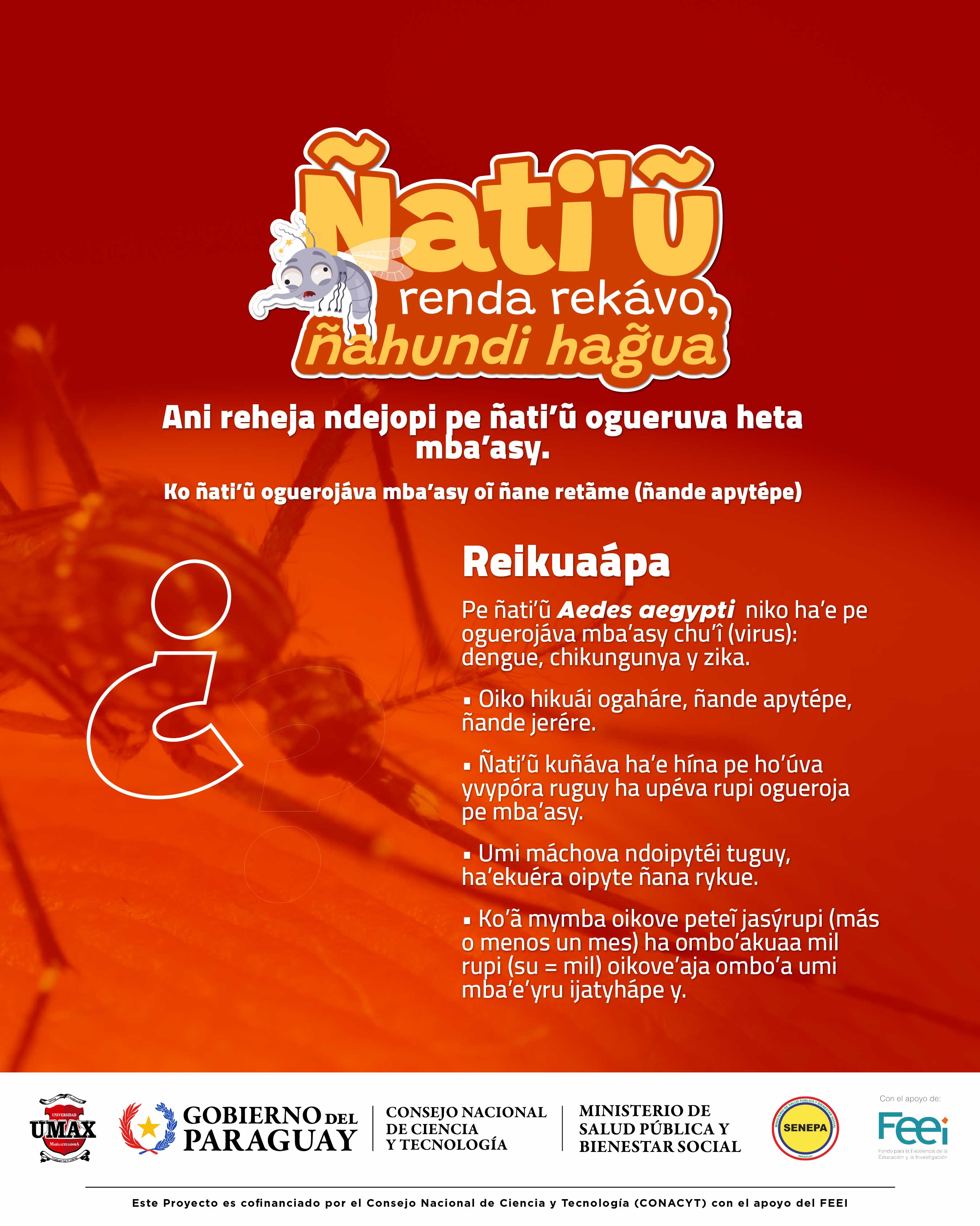 Ko ñati'ũ Aedes aegypti ha'e pe omyasãi ha omosarambi karia'ýva, pe dengue, Chikungunya ha Zika.